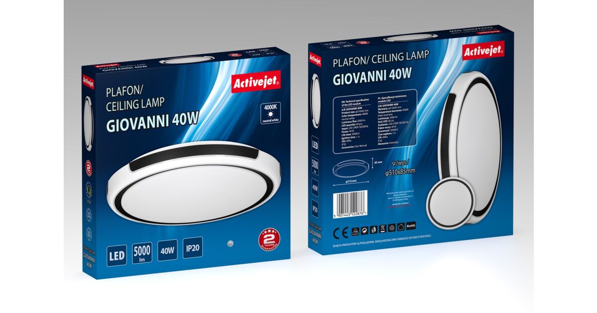 Az Activejet Giovanni LED mennyezeti lámpa tökéletes választás otthona bármely helyiségébe. A modern design és a beépített LED technológia kombinációja energiatakarékos és stílusos világítást biztosít.