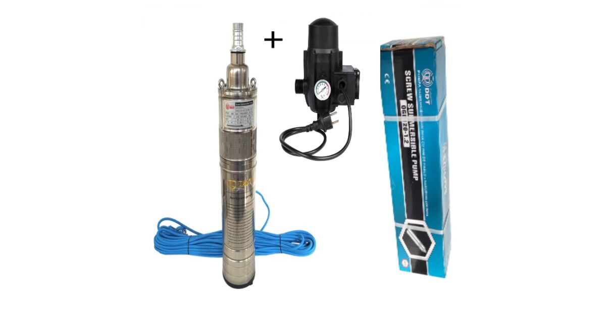 Merülőszivattyú, DDT, QGD120, komplett rozsdamentes acél, rozsdamentes acél csavarok, védőrács, 20 m kábel, 120 m, 3 m³/h + Automatikus elektronikus nyomáskapcsoló, DDT, LS-4 leírása