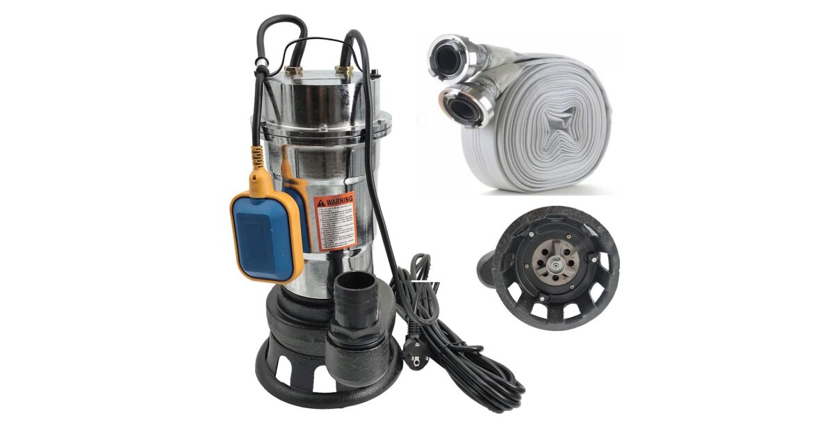 Promóciós csomag DDT szennyvízszivattyú, úszóval és aprítóval, 3000 W, maximális ürítési mélység 8 méter, rozsdamentes acél test + Tűzoltótömlő 2'' 20 m, 8 rúd, csatlakozókkal + Tűzoltótömlő