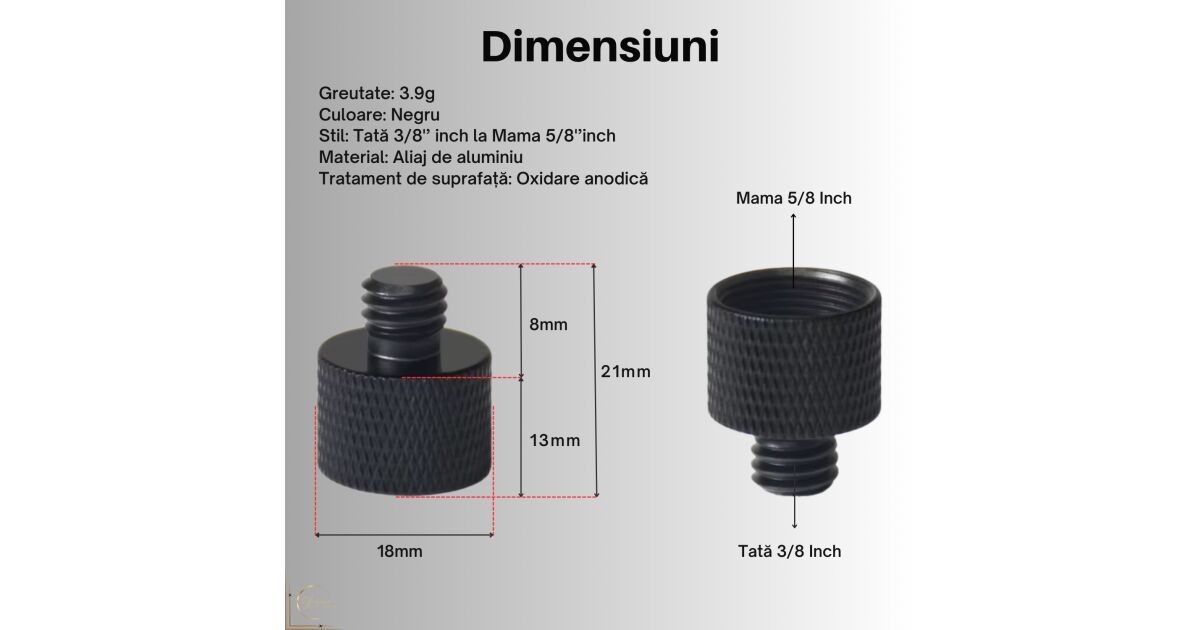 CR|GAS® Alumínium Mikrofonállvány Adapter, 5/8" belső menetről 3/8" külső menetre, Mikrofonállványhoz, Kamera Állványhoz és Hangrögzítő Eszközökhöz, Prémium Adapter
