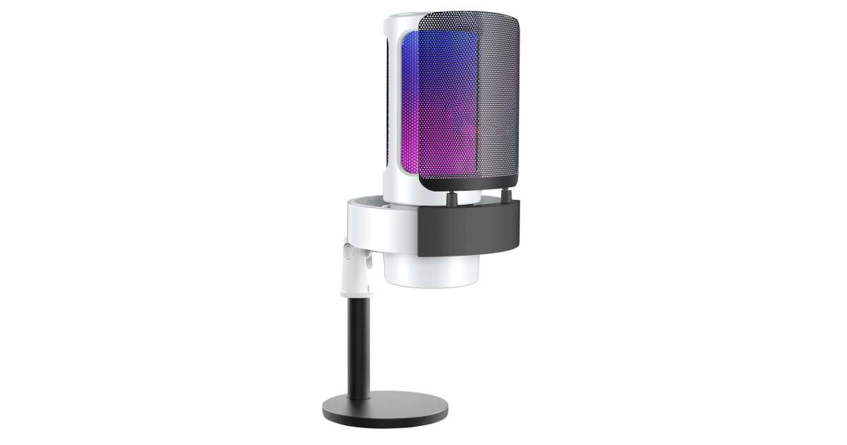 AxaCube® kondenzátormikrofon játékhoz, felvételekhez, streaminghez, youtube, zoom, háttérzajcsökkentés, némítási funkció, kardioid, RGB fény, pop szűrő, kompatibilis Windows, MacOS, PS4, PS5, USB csatlakozás, fehér