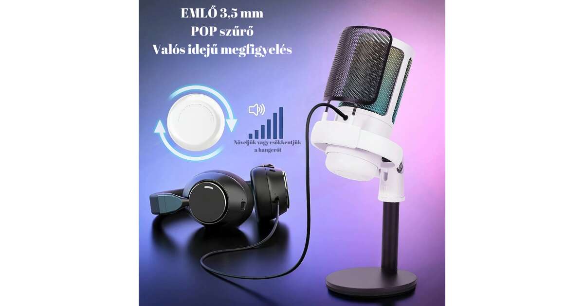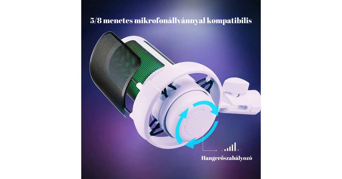 Ezt a terméket így is ismerheted: AxaCube® kondenzátormikrofon játékhoz, felvételekhez, streaminghez, youtube, zoom, háttérzajcsökkentés, némítási funkció, kardioid, RGB fény, pop szűrő, kompatibilis Windows, MacOS, PS4, PS5, USB csatlakozás, fehér