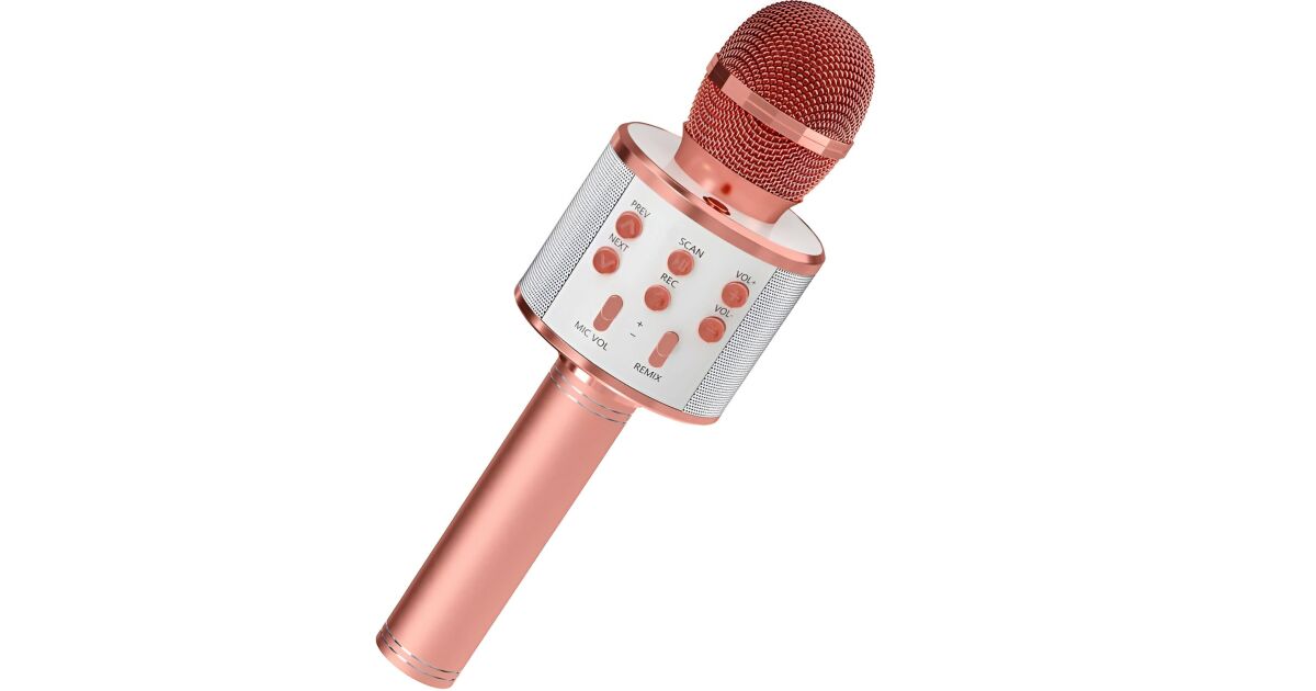 Karaoke mikrofon, KeepHome, gyerekeknek, Bluetooth, beépített hangszóró, bármilyen okostelefonnal kompatibilis, beépített akkumulátor, többfunkciós, rózsaszín arany vásárlás: