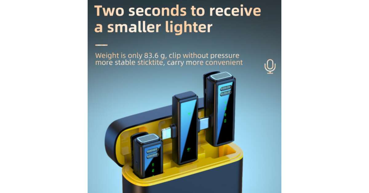 Készülj fel a professzionális hangminőségre ezzel a 2 az 1-ben vezeték nélküli lavalier mikrofon készlettel! Tökéletes választás vlogoláshoz, TikTok videókhoz, interjúkhoz, élő közvetítésekhez és videofelvételekhez. A beépített zajszűrőnek köszönhetően kristálytiszta hangot biztosít, még zajos környezetben is.