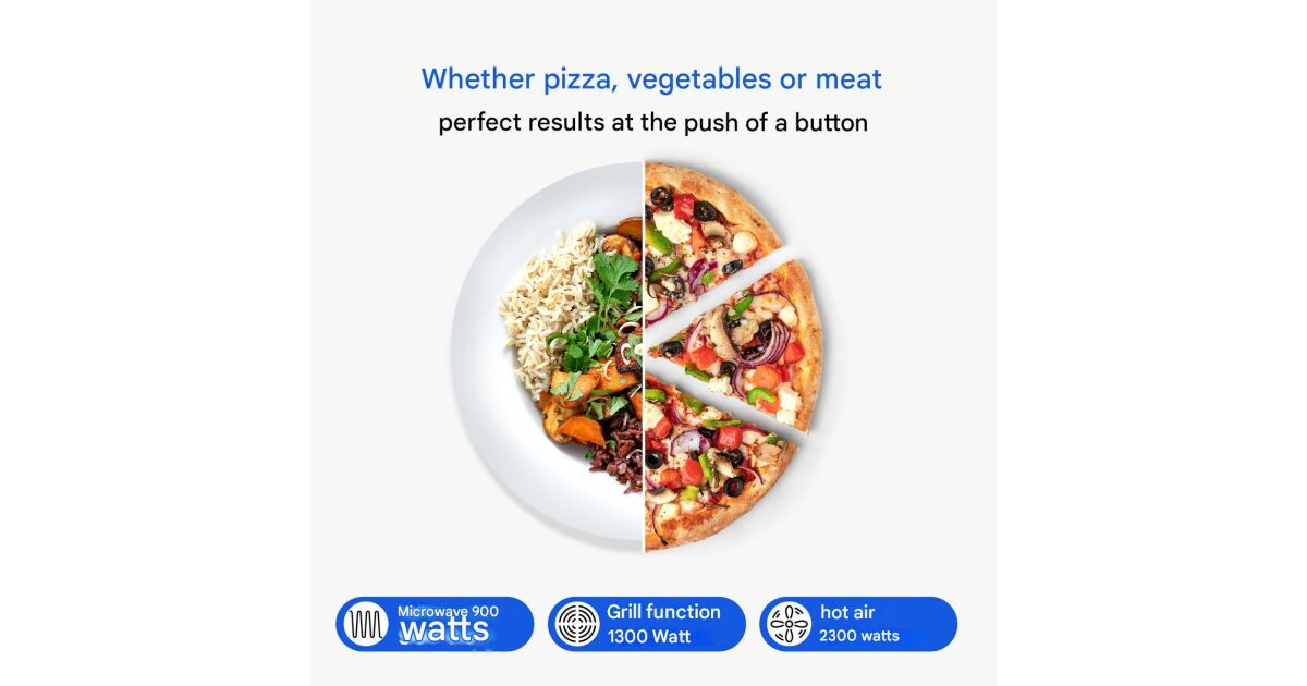 - ✨ 3 az 1-ben funkció: Mikrohullámú sütő (900W), grill (1300W), forró levegő (2300W)