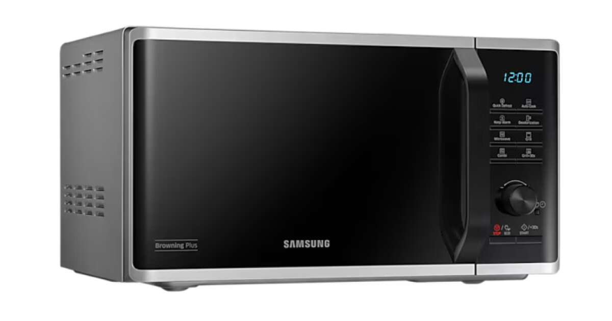 Ezt a terméket így is ismerheted: Samsung MG23K3515AS/EO Szabadonálló Mikrohullámú sütő, 23L, 800W, 6 fokozat, Browning Plus, Keep Warm, Grill, Szürke-Fekete