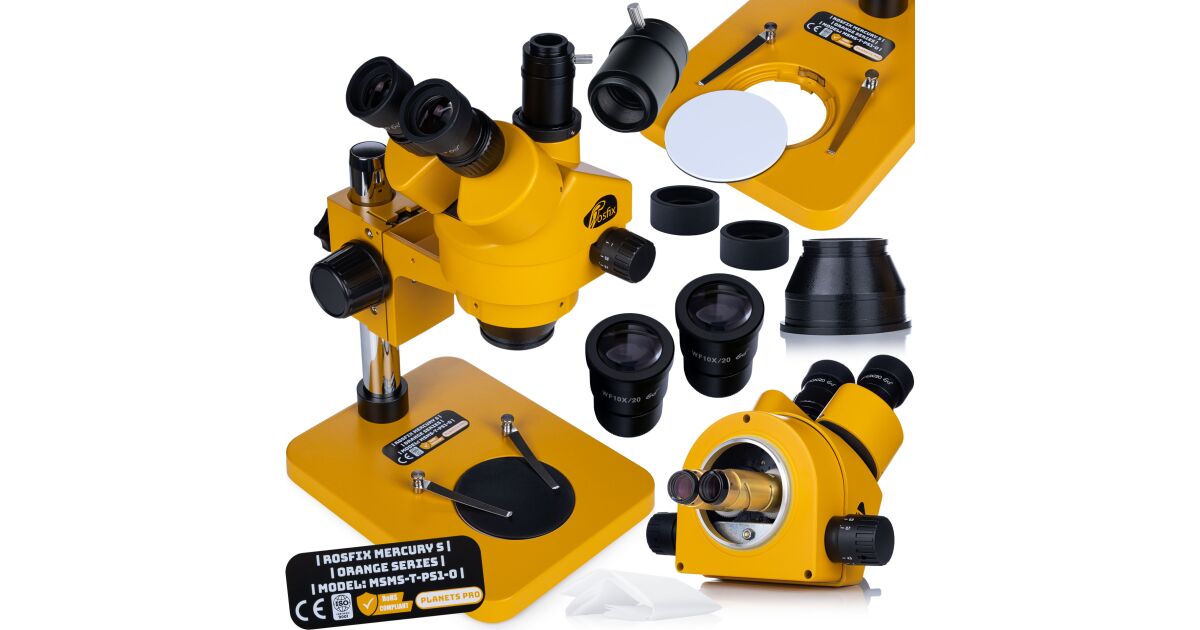 A Rosfix Mercury S egy professzionális trinokuláris sztereoszkóp mikroszkóp, amely kiváló optikai teljesítményt és ergonomikus kialakítást kínál. Tökéletes választás szervizekbe, laboratóriumokba és minőségellenőrzési feladatokhoz.