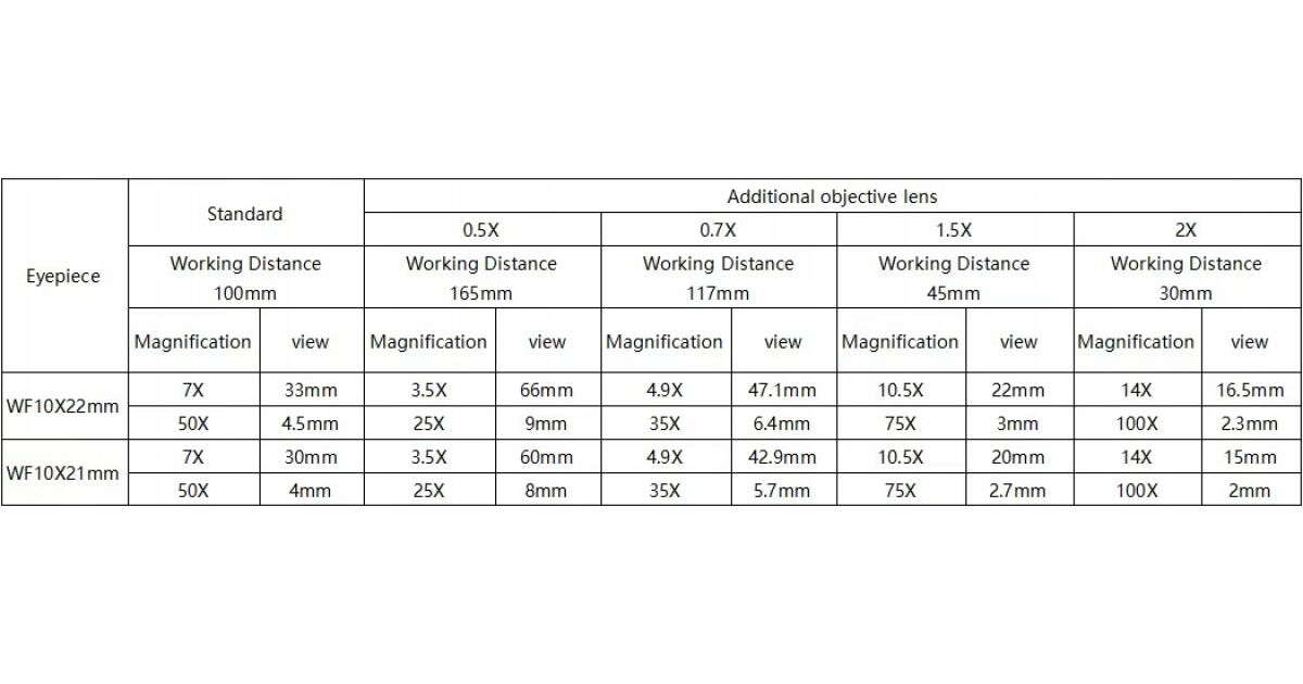 - Nagyítási tartomány: Standard 7x – 50x, bővítéssel akár 270x-es nagyítás is elérhető.