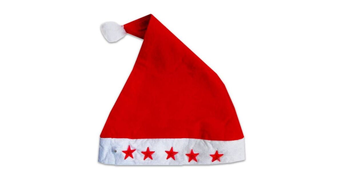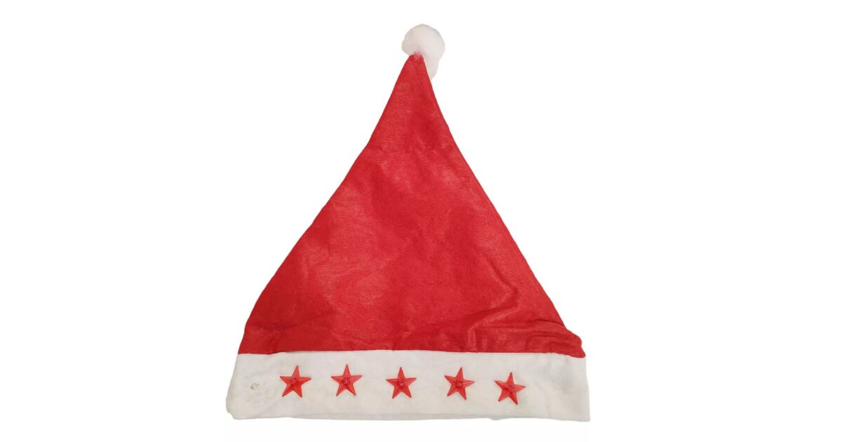 Ezt a terméket így is ismerheted: Univerzális méretű Mikulás sapka bojttal és világító csillagokkal légáteresztő filc anyagból - piros, fehér