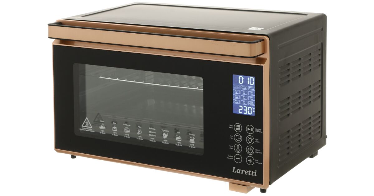 A Laretti LR-EC3908 elektromos minisütő 2000 W-os teljesítményével gyorsan és egyenletesen melegíti fel a levegőt, így minden étel tökéletesen sül át. A 45 literes kapacitás elegendő helyet biztosít családi adagok elkészítéséhez vagy nagyobb sütemények sütéséhez. A hőmérséklet szabályozása 70 és 230°C között történik, így könnyedén alkalmazkodik bármilyen recept igényeihez, legyen szó pirításról, sütésről vagy grillezésről.Modern érintőkijelző és praktikus kialakítás