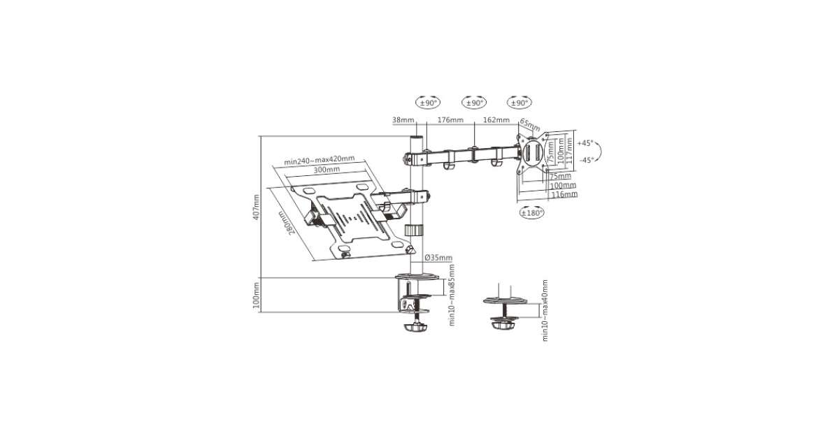 Gembird MA-DA-03 Adjustable Desk Mount w/ Monitor Arm And Notebook Tray Fekete MA-DA-03 leírása