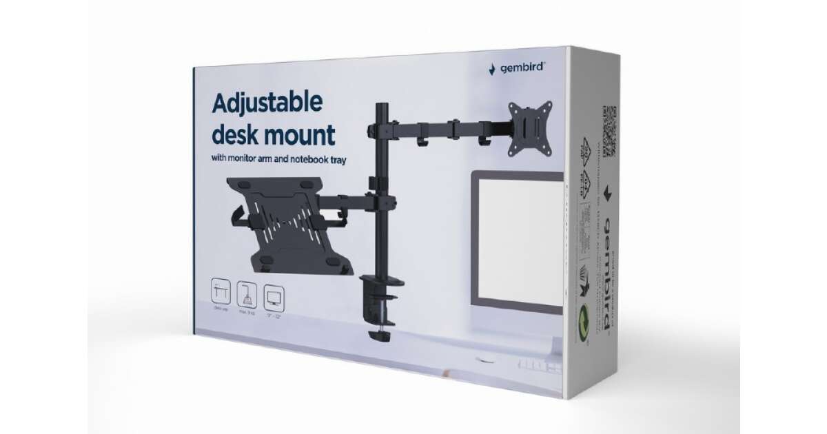 Ezt a terméket így is ismerheted: Gembird MA-DA-03 Adjustable Desk Mount w/ Monitor Arm And Notebook Tray Fekete MA-DA-03