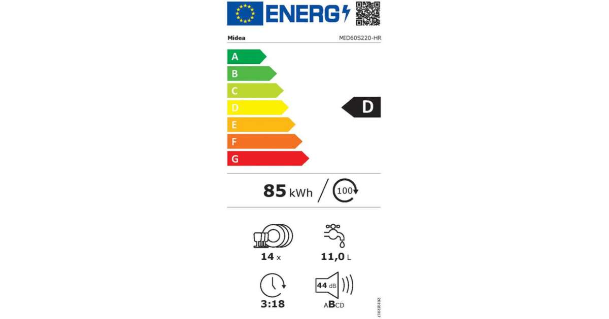 Ezt a terméket így is ismerheted: Midea MID60S220-HR Beépíthető mosogatógép, 14 teríték,11 L,6 prog.,44 dB,D,Felső evőeszk.,60 cm,Digit.kijelző,Autom.ajtónyit.vel