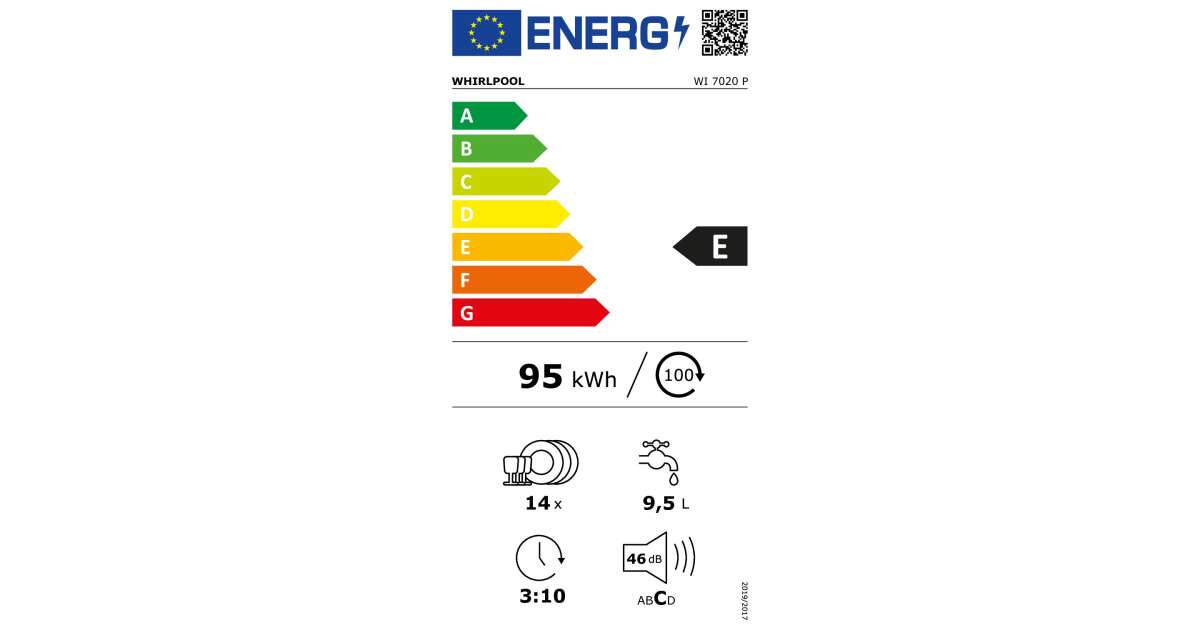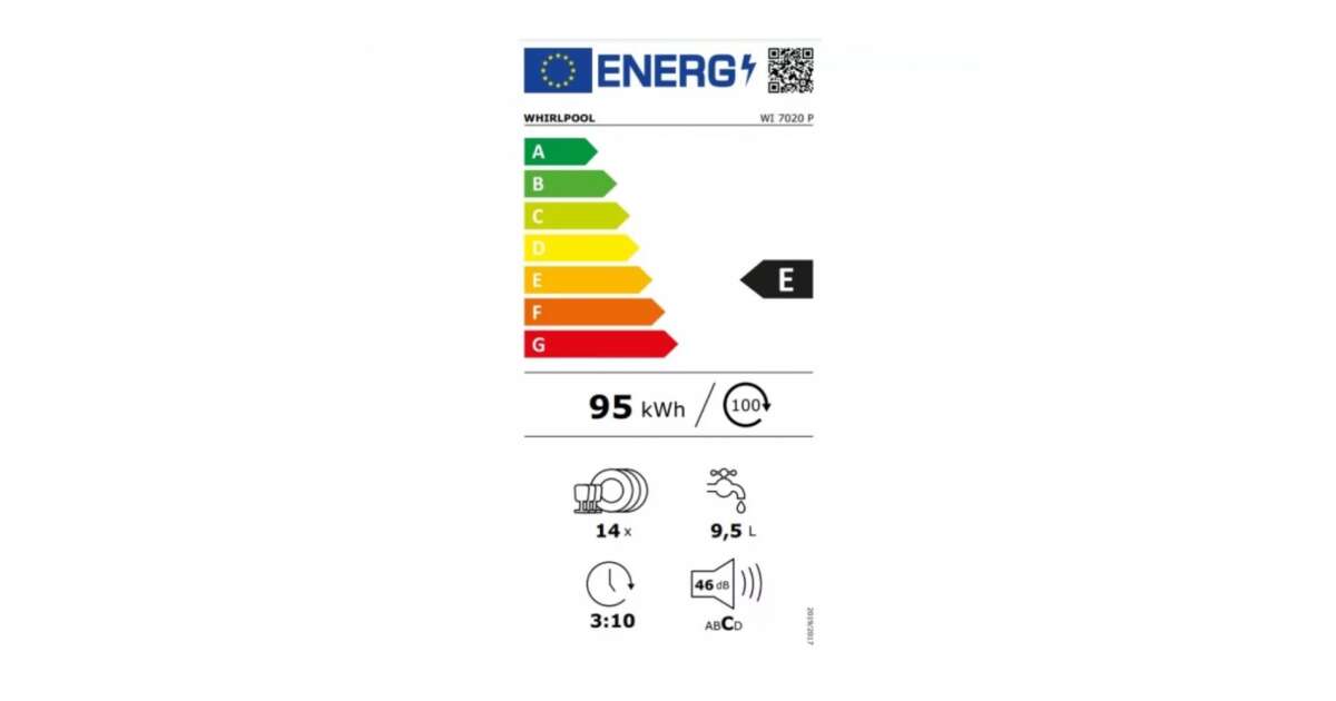 Whirlpool WI 7020 P Beépíthető mosogatógép, 14 teríték, 8 program, FlexiSpace, PowerClean Pro, E energiaosztály leírása
