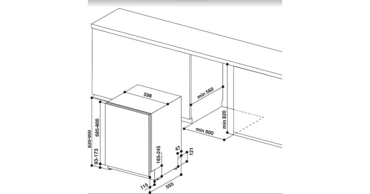 | Beépítési méret | 820-900x600x570 mm |