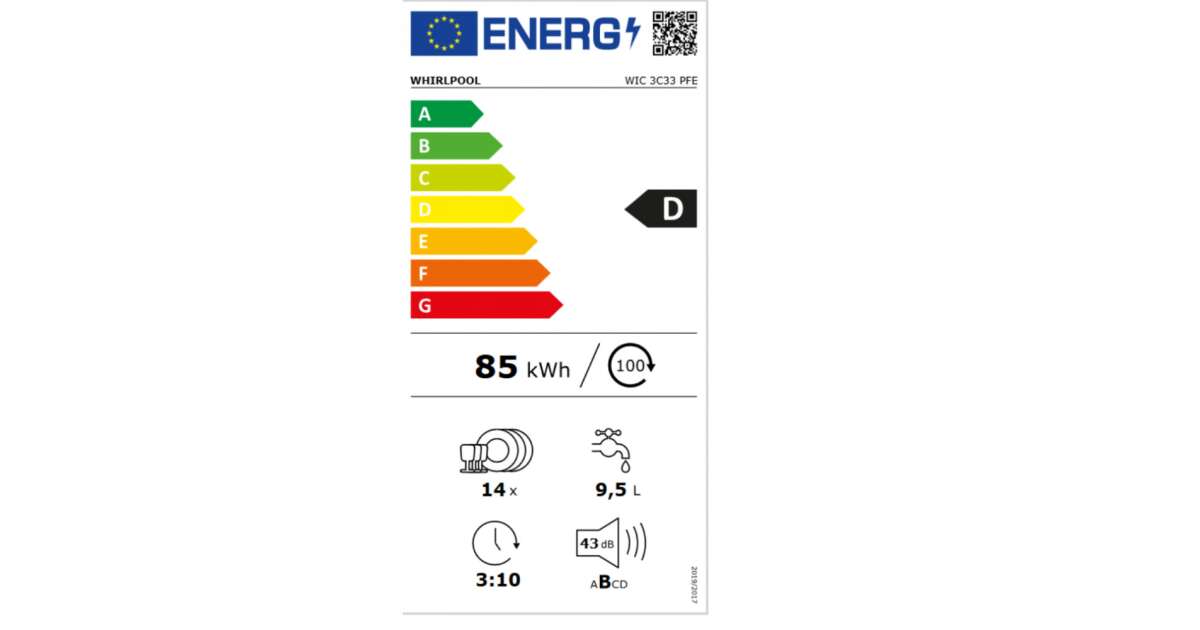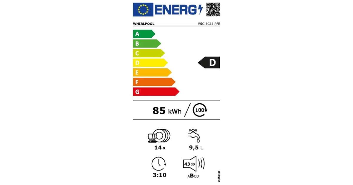 Whirlpool WIC 3C33 PFE Beépíthető mosogatógép, 14 teríték, 8 program, FlexiSpace, PowerClean Pro, D energiaosztály leírása