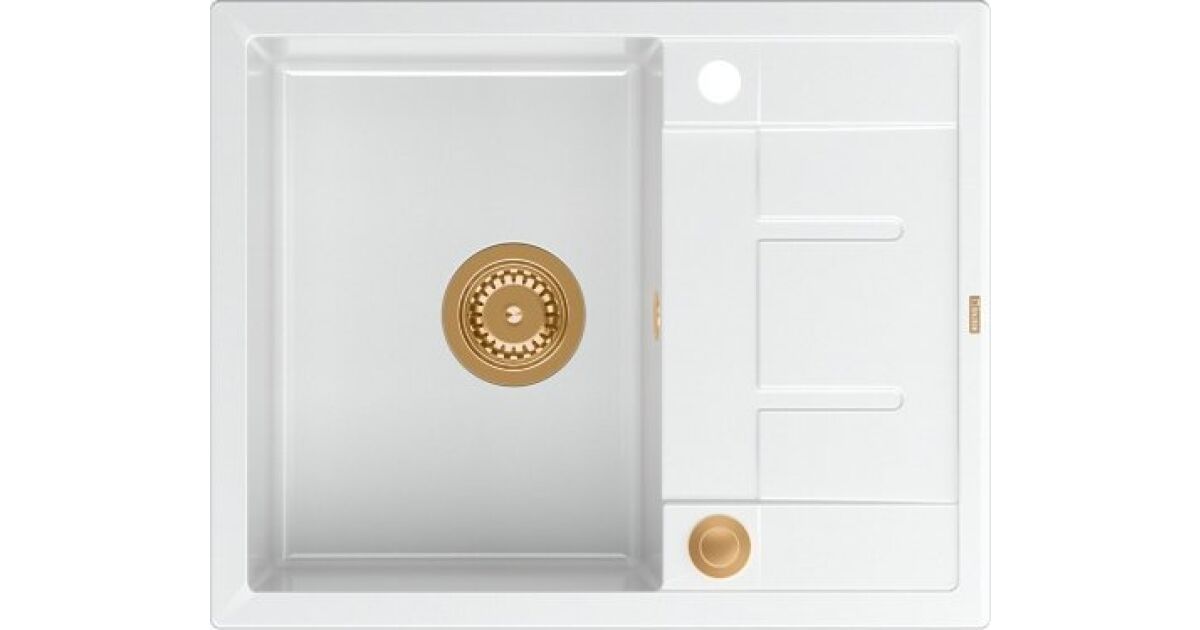GraniteQ MORGAN 116 Snow White gránit mosogató réz szifonnal és Push To Open leeresztővel 💧