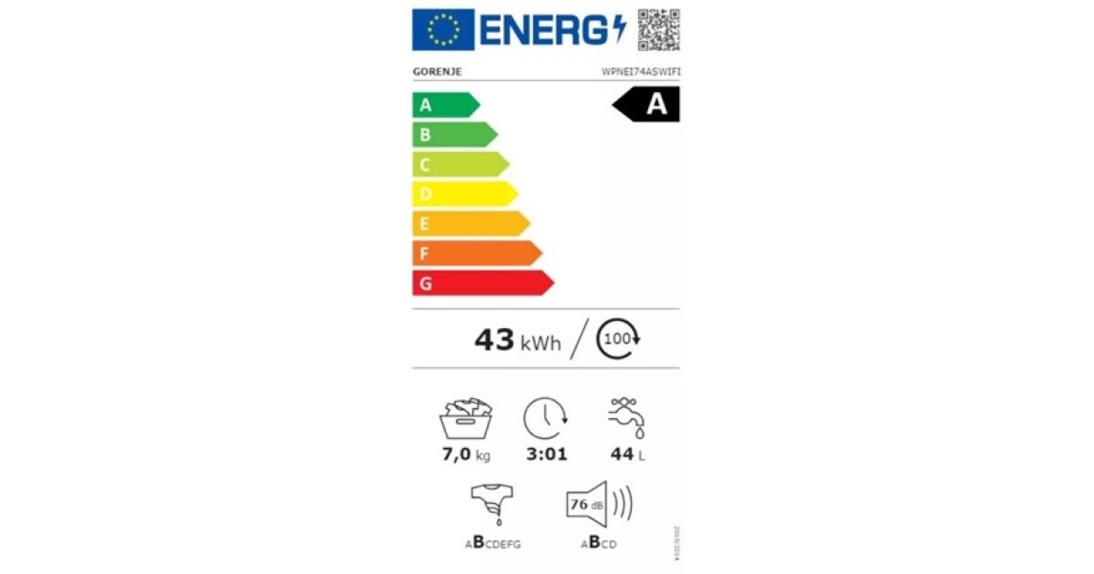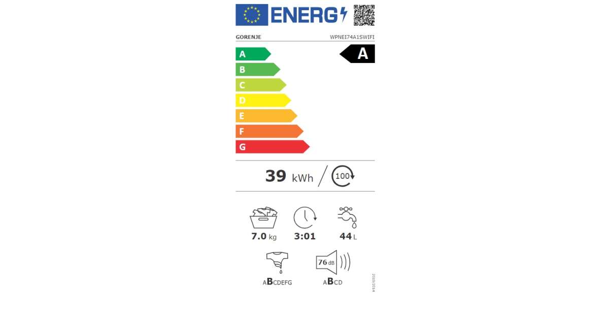 Gorenje WPNEI74ASWIFI Elöltöltős mosógép, 7 kg, 1400 ford./perc, 15 program, ExtraHygiene, A energiaosztály leírása