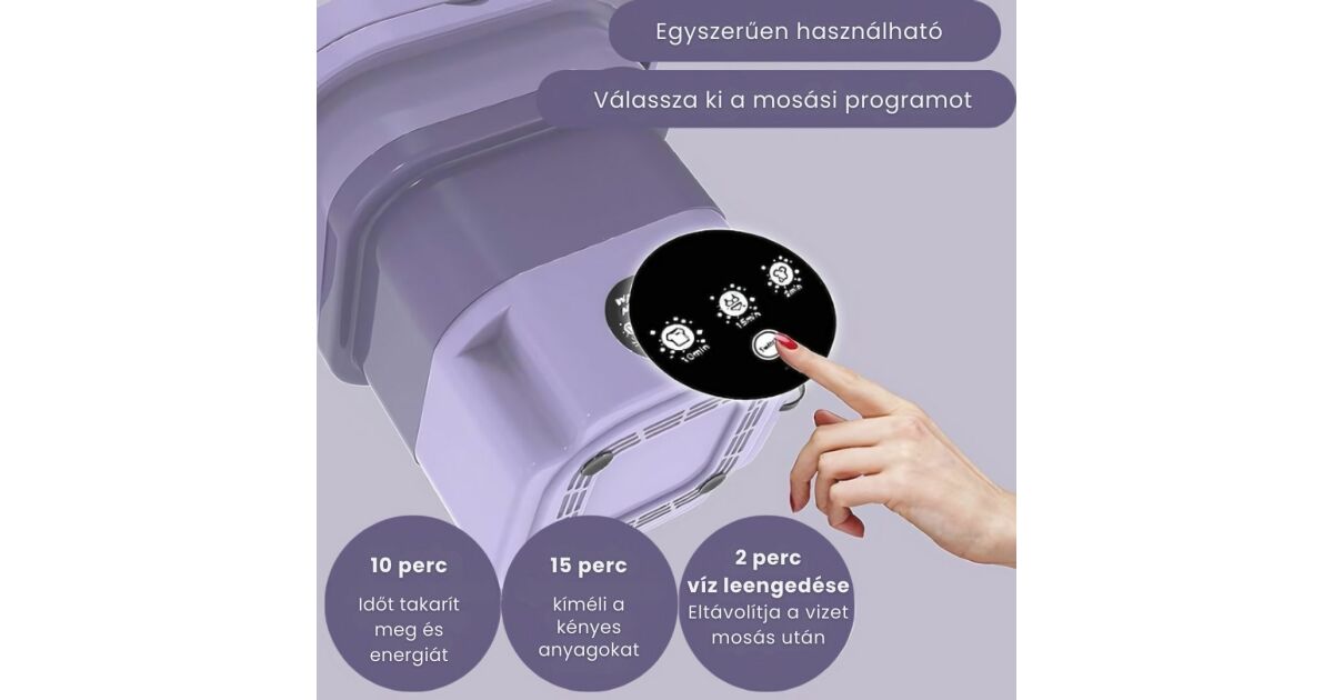 - ⚙️ 3 mosási program: Válaszd ki a legmegfelelőbb programot a ruháidhoz.