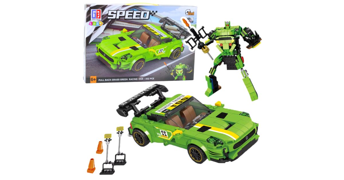 Építőkockák Autó Robot 2in1 Sárga-Zöld Meghajtású 352 db.- 23572 vélemények