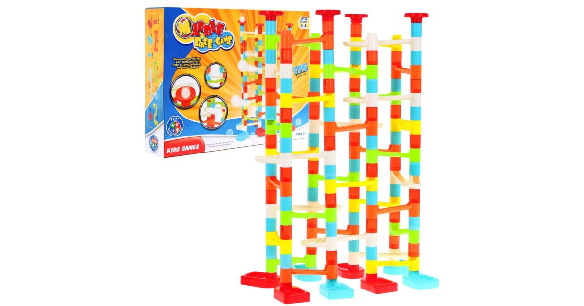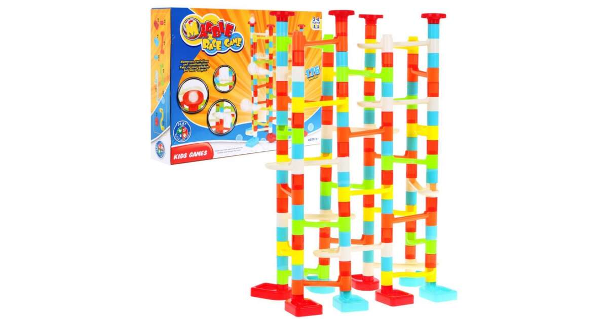 Ez a 176 darabos színes építőkockából álló golyópálya garantáltan órákig leköti a 3 éves kortól kezdve a nagyobb gyerekeket is! Kreatív építés és izgalmas golyóverseny egyben! 😊