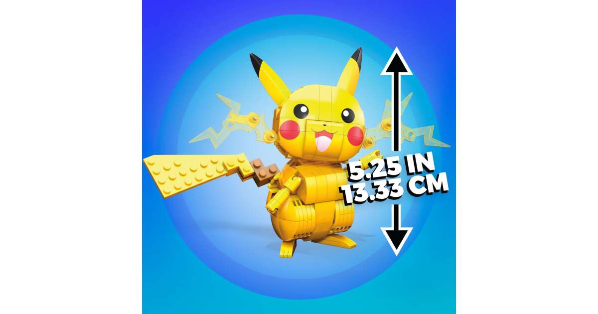 Ez a 211 darabos MEGA Construx készlettel megépítheted a saját, 10 cm magas Pikachu figurádat! Kiváló minőségű, részletgazdag építőkockákból áll, melyekkel életre keltheted a kedvenc elektromos típusú Pokémonodat.