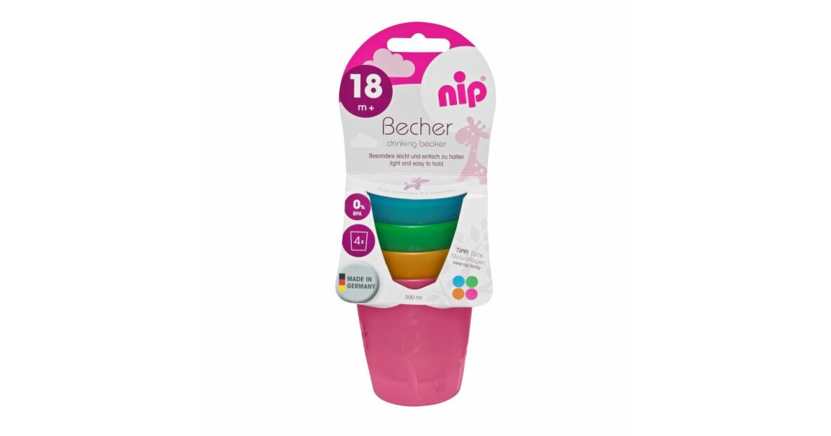 Nip 4 db színes, BPA-mentes pohárkészlet 18 hónapos kortól 🦒