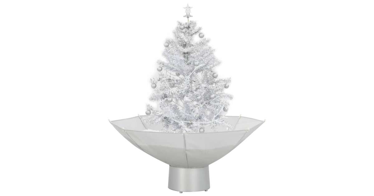 Ezt a terméket így is ismerheted: Fehér havazó karácsonyfa ernyő alakú talppal 75 cm
