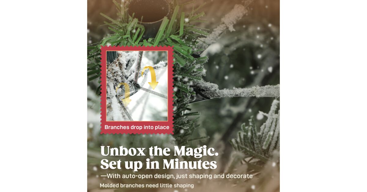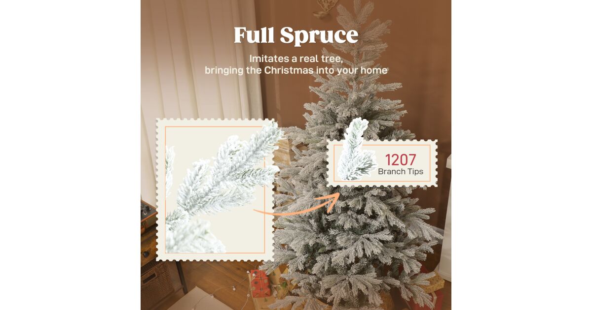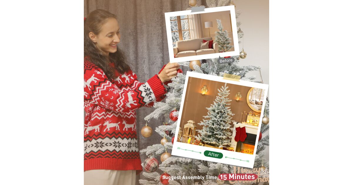 - 🏡 Teljes és élénk ünnepi látvány: A havas ágak gyönyörűen mutatnak, és igazi karácsonyi hangulatot teremtenek.
