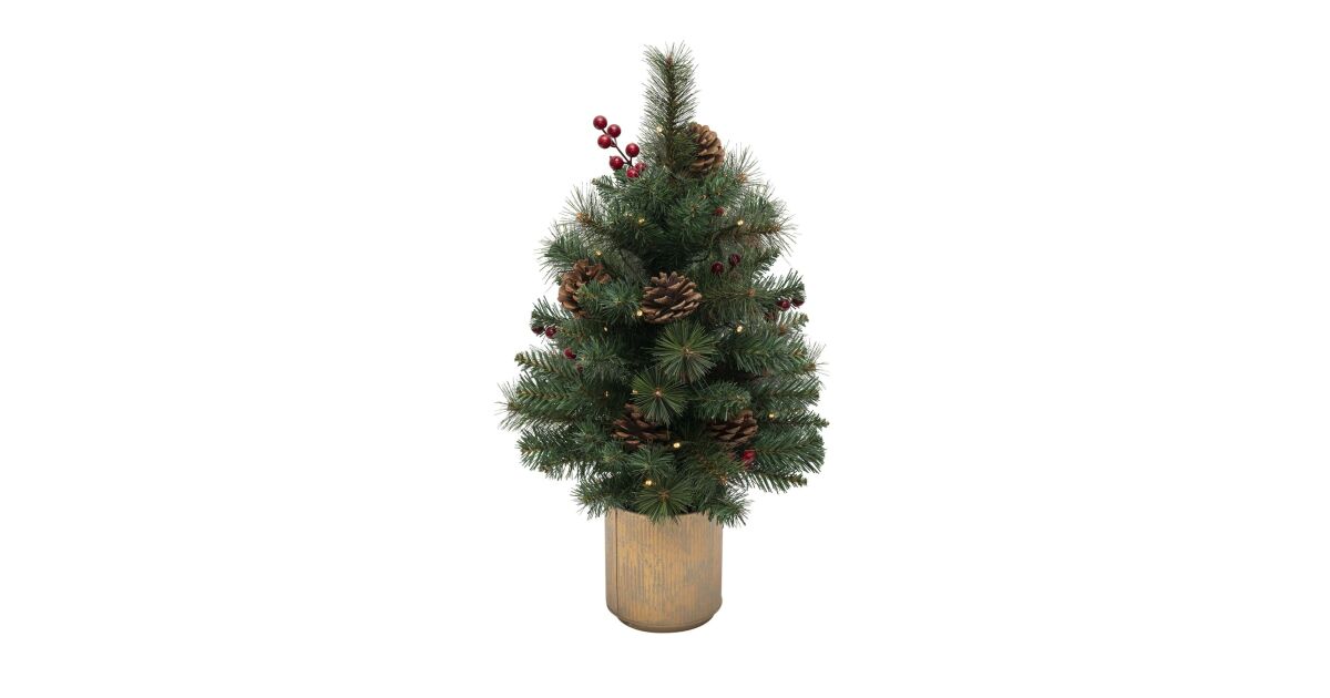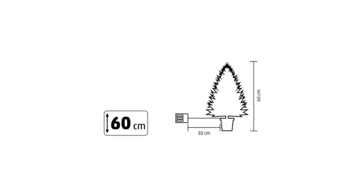 Home KMF60BLED elemes műfenyő tobozokkal, LED-ekkel, 60cm magas, 30db melegfehér LED, 8 program, 2D tűlevelek, elemes tápellátás, beltéri kivitel