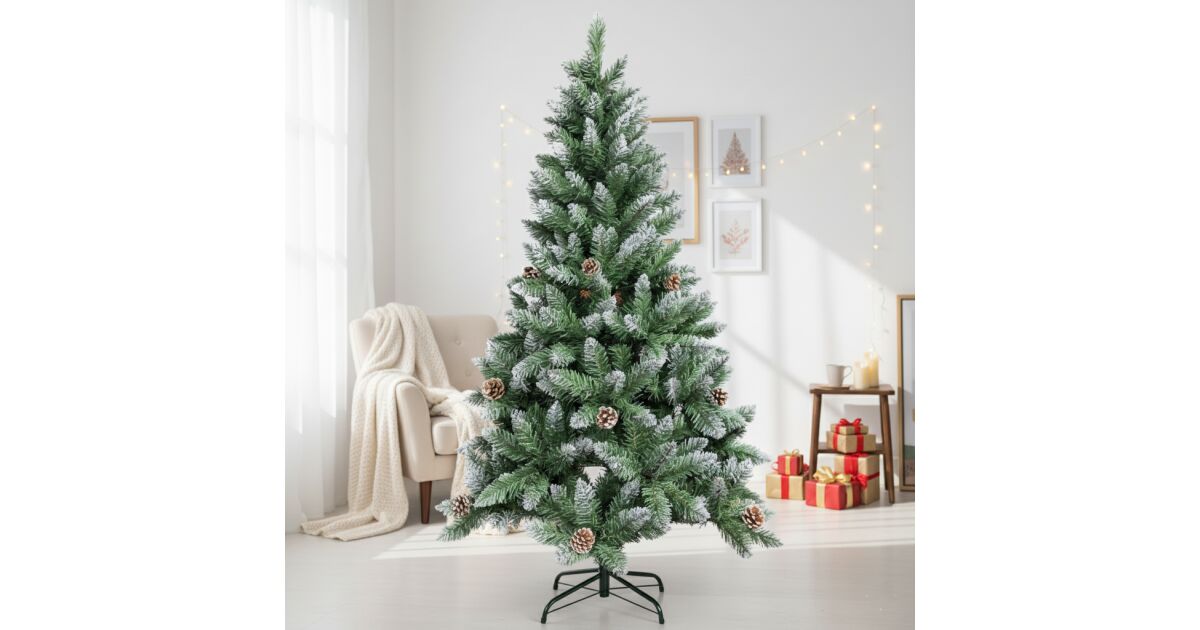 Ez a dús és havas hatású műfenyő a tobozokkal igazán élethű megjelenést kölcsönöz, így az ünnepi dekoráció központi eleme lehet. ✨