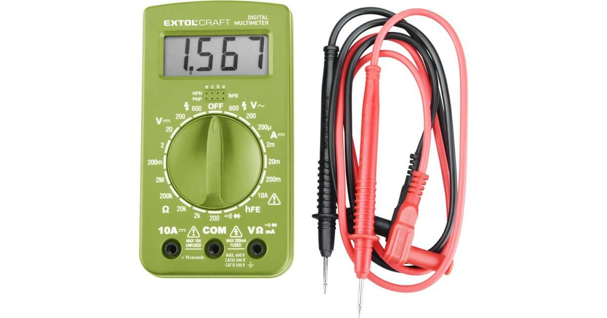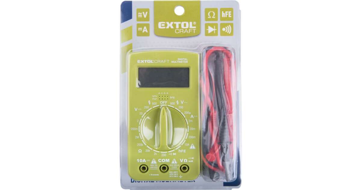 EXTOL CRAFT digitális multiméter; Amper/Volt/Ohm mérő, hangjelző funkcióval, CE, 1 db 9V elem