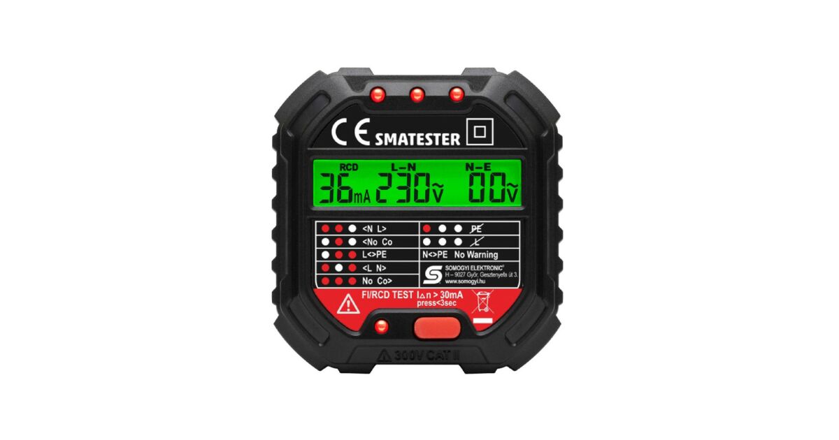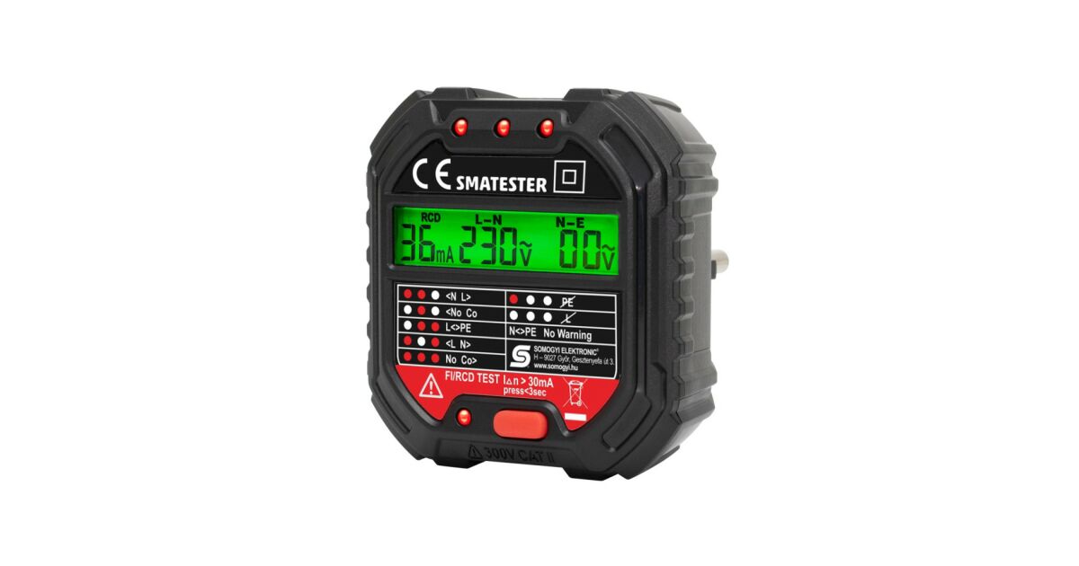 Ezt a terméket így is ismerheted: Home SMATESTER konnektor teszter, LED visszajelzők, Voltmérő, L-N, N-E, RCD mA, Fi és RCD relé ellenőrző, elem nélkül működik, max. 250 V~ aljzatokhoz