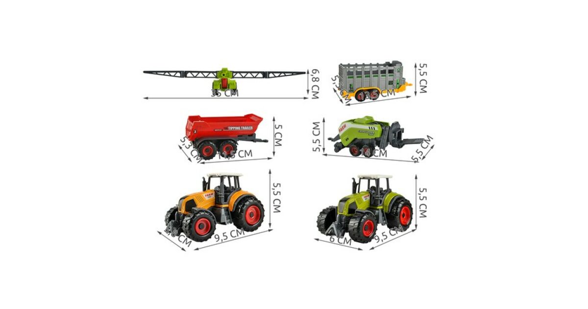 Ez a 6 darabos mezőgazdasági járműkészlet óriási móka kicsiknek és nagyoknak egyaránt! Fedezd fel a gazdálkodás izgalmas világát ezekkel a részletgazdag, valósághű modellekkel.