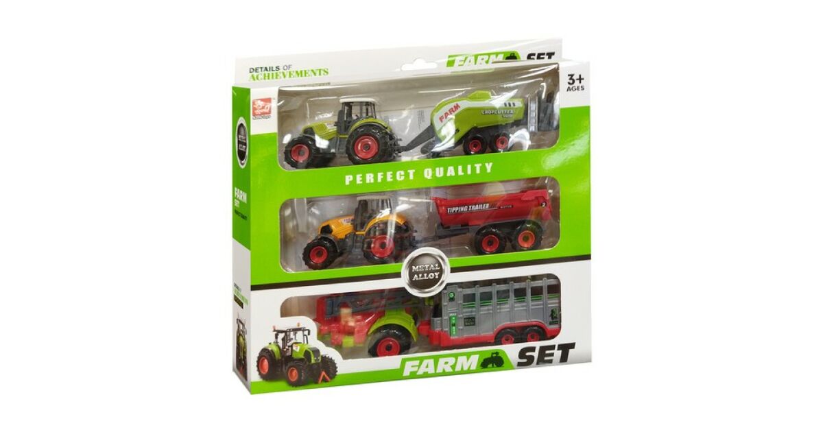 Ezt a terméket így is ismerheted: 6 db-os játék mezőgazdasági járműkészlet (traktor, pótkocsi stb.)