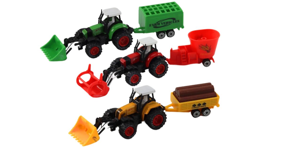 Traktor pótkocsival, kotrógép, buldózer, mezőgazdasági gép, 3 színben