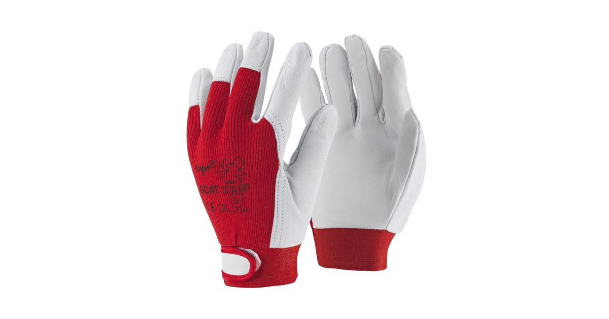 Sofőrkesztyű kecskebőr pamut TOP GOAT, tépőzáras mandzsetta, fehér/piros, 8 leírása