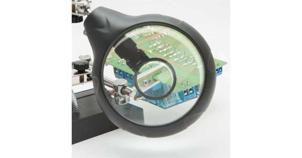 Ezt a terméket így is ismerheted: Handy Nagytó Fahrenheit Professzionális Paneltartó nagyítóval és krokodilcsipeszekkel LED világítással 10103 nagyító állomás forrasztó állomáshoz