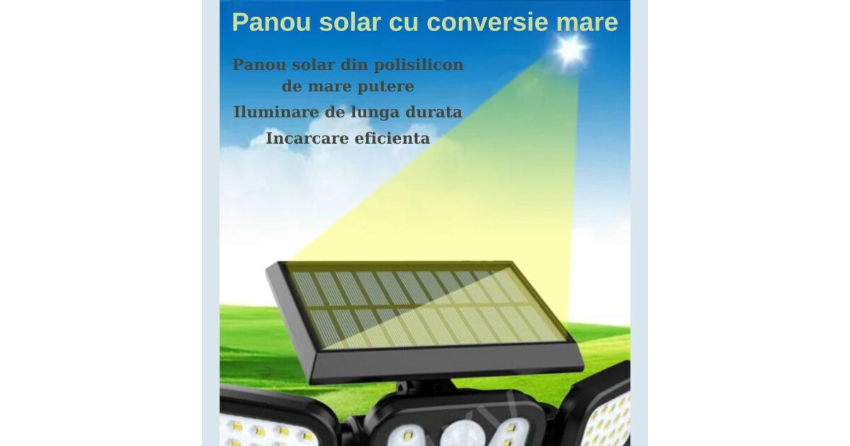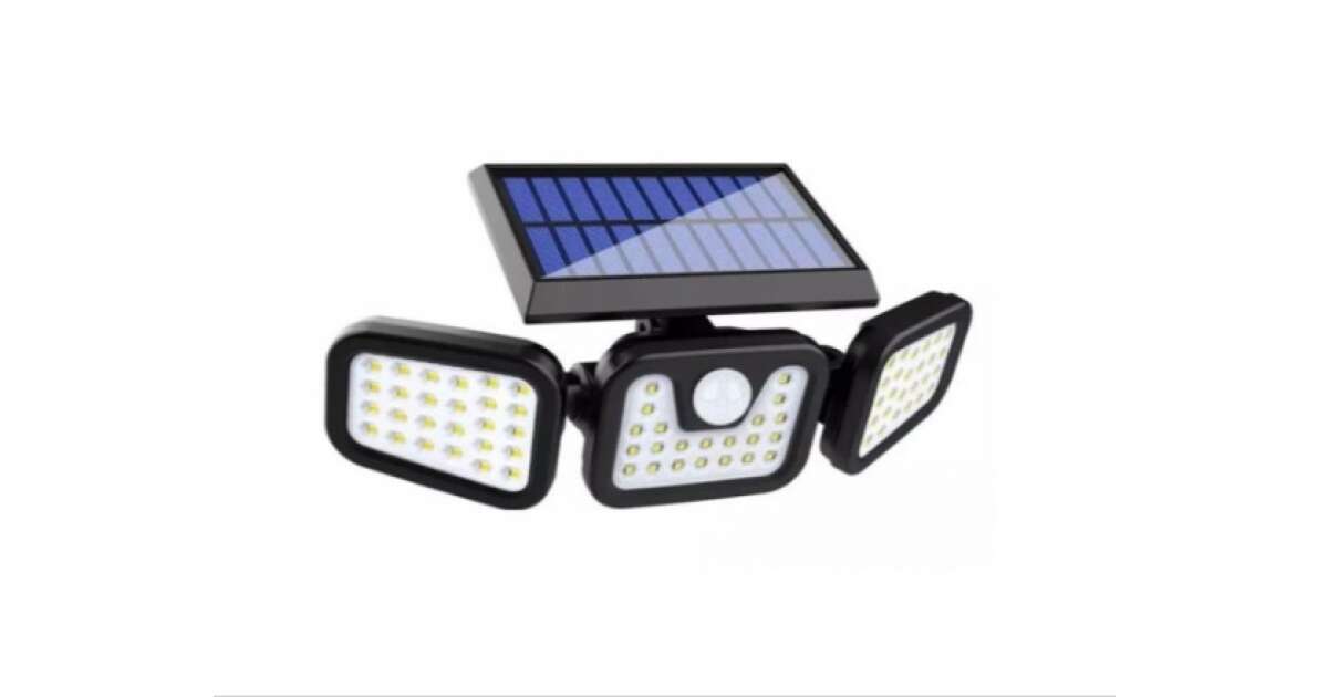 Háromfejes napelemes mozgásérzékelős kültéri lámpa - 171 COB LED-del