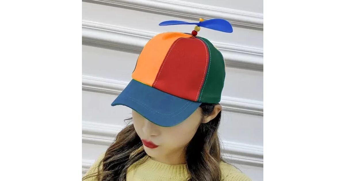Ez a színes, vidám baseball sapka egy beépített propellerrel van ellátva, ami forog, ha fúj a szél! Tökéletes választás fesztiválokra, bulikra, vagy csak egy kis vidámsághoz a hétköznapokban. A sapka kényelmes viseletet biztosít, a színes design pedig feldobja a megjelenésed.