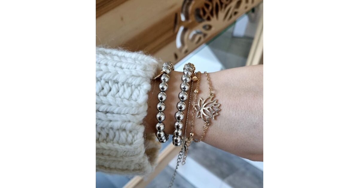 - Három ezüst gyöngyös karkötő: Rugalmas kialakítású, 6 cm átmérőjű, kényelmes viselet.