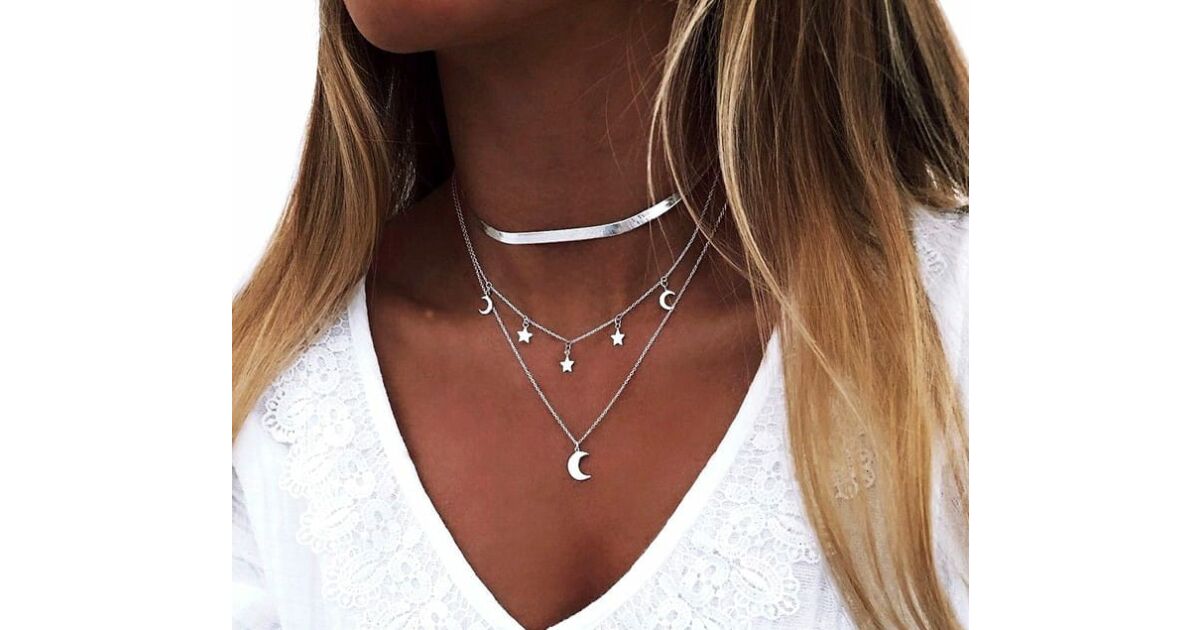 Ezüst színű hold és csillag nyaklánc - Bohém stílusban ✨
