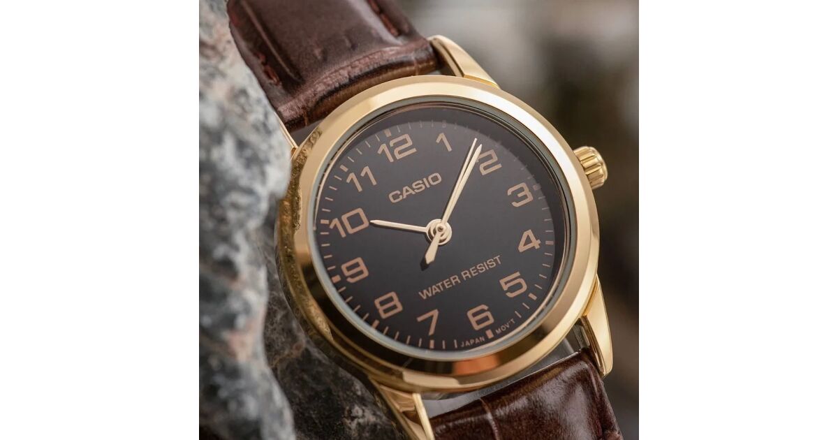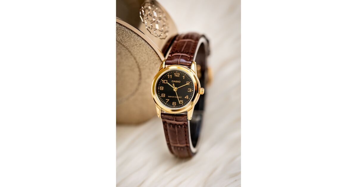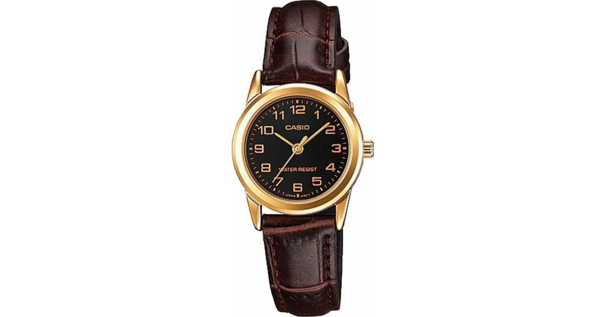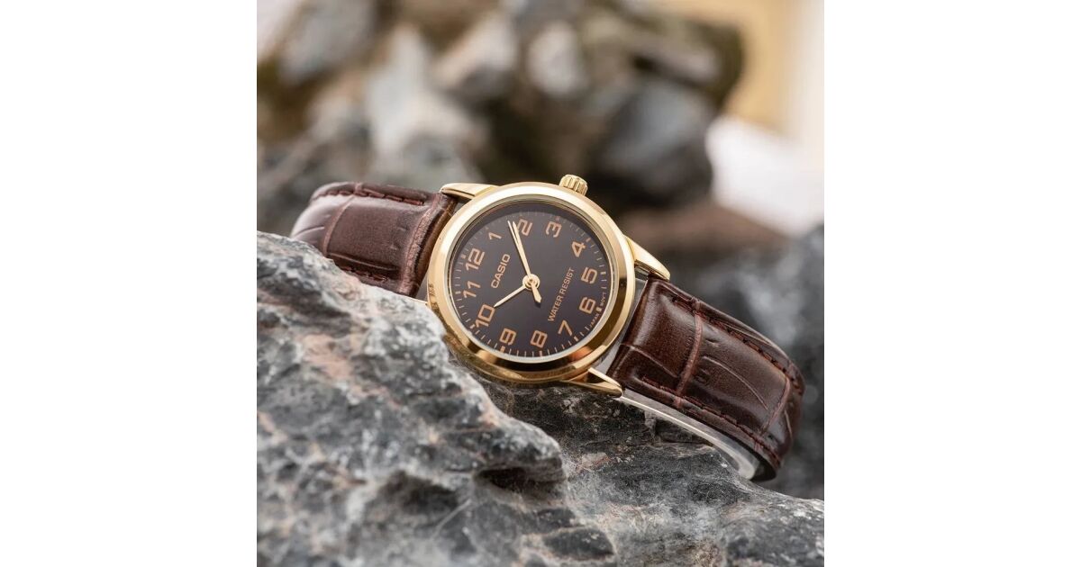 Ezt a terméket így is ismerheted: Casio LTP-V001GL-1B női karóra, aranytok 24 mm, barna bőrszíj, WR30