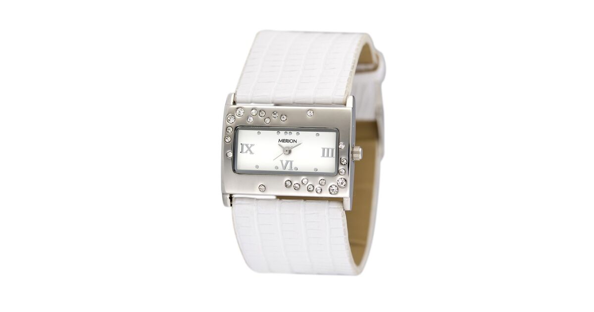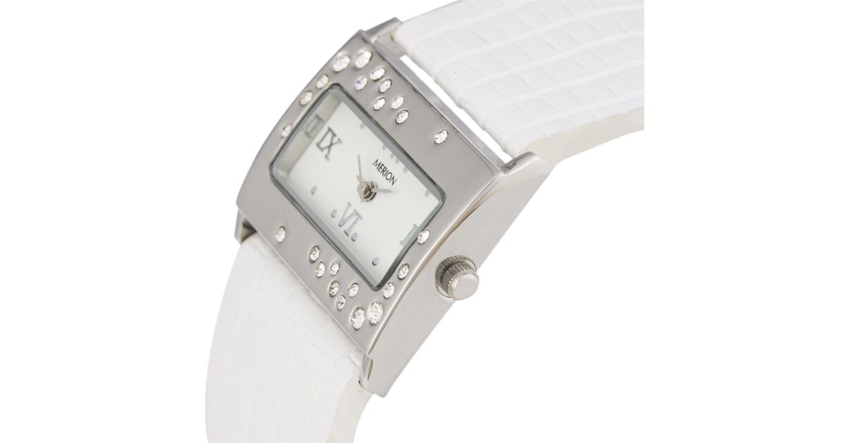 Ezt a terméket így is ismerheted: Merion női karóra, ezüst színű fém tok, fehér színű bőrszíj, fehér színű számlap, ásványüveg, quartz szerkezet, cseppmentesség