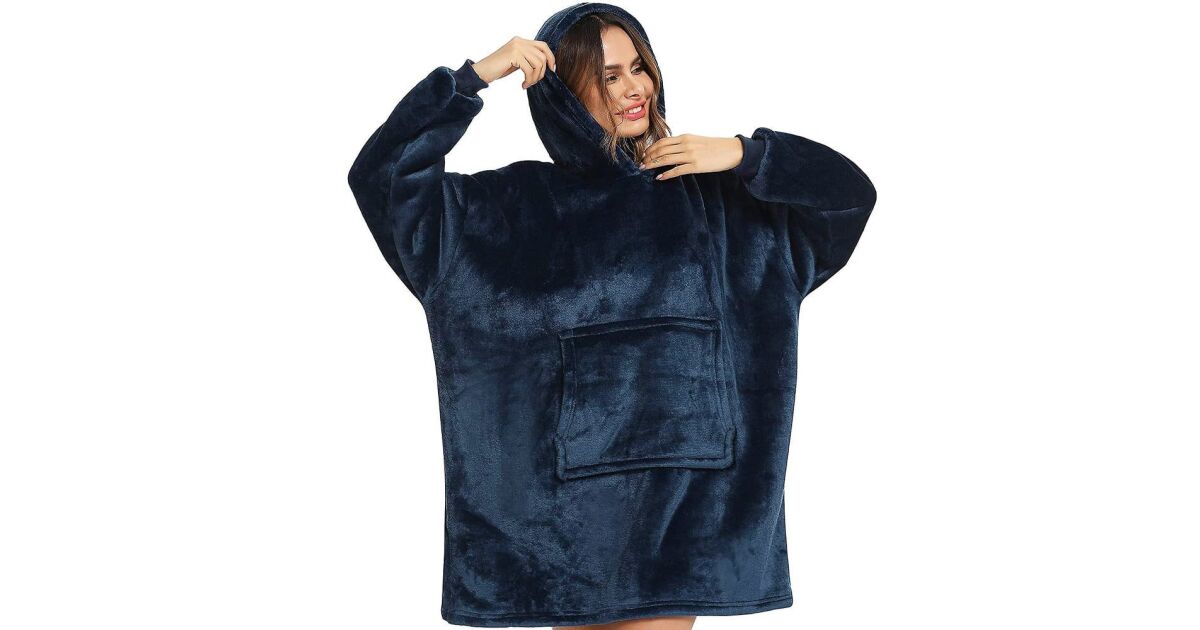 Ezt a terméket így is ismerheted: Quasar & Co.® Takaró ujjakkal és kapucnival, elülső zsebbel, párnázott, plüss, ultra könnyű és meleg, poliészter, Kék, univerzális méretű