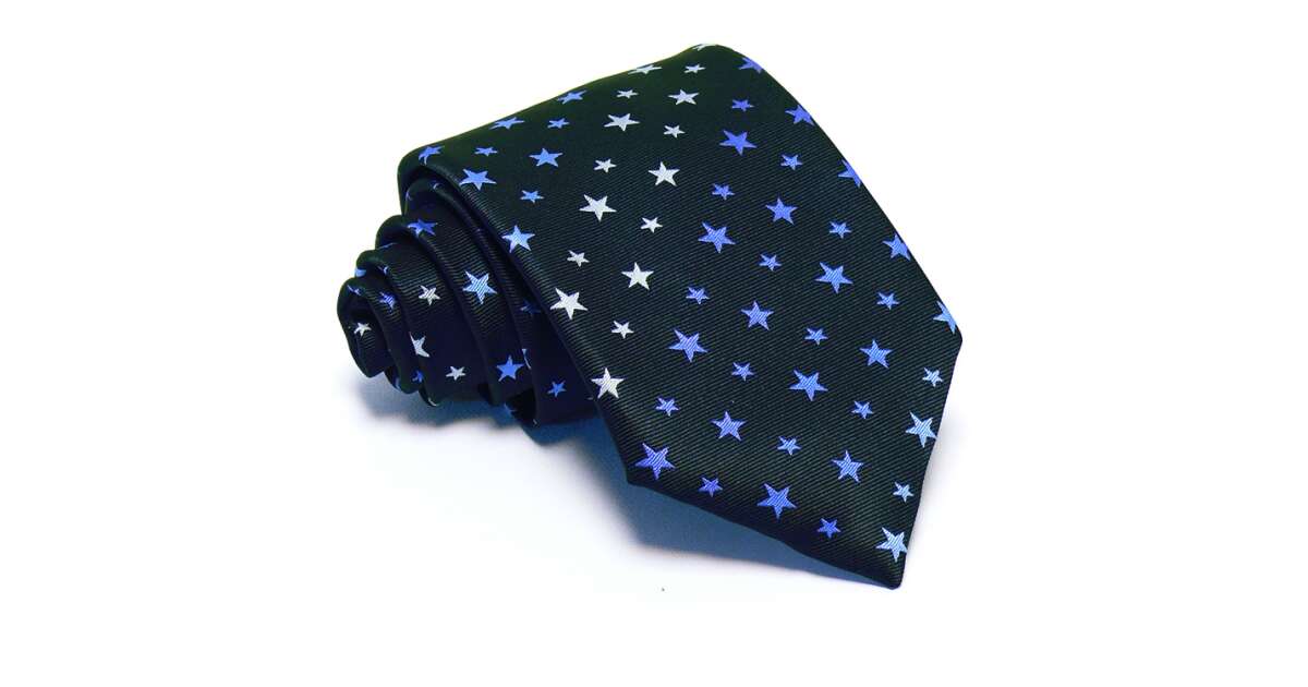 Ez a sötétkék nyakkendő világoskék és fehér csillagokkal díszített mintázattal igazán egyedi megjelenést kölcsönöz. A J.Waller's kollekcióból származó darab tökéletes választás mindazok számára, akik értékelik az eleganciát és a trendi megjelenést. A fiatalos dizájn tökéletesen kombinálható mindennapi és ünnepi viselettel is.