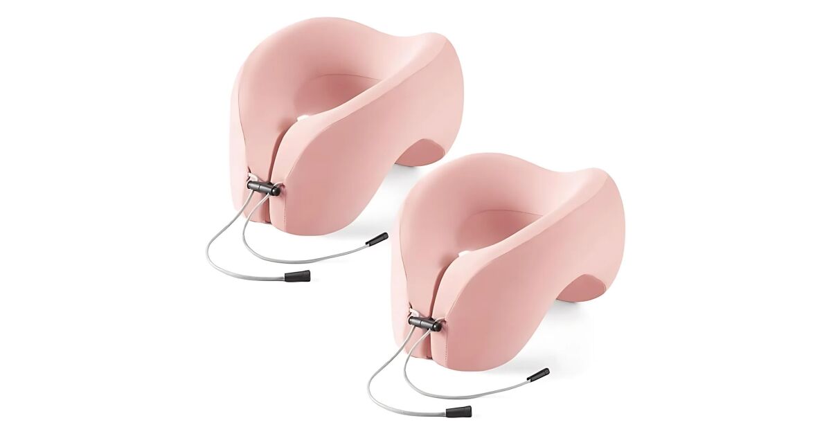 2 db-os ergonomikus nyakpárna memóriahabos bevonattal, 360°-os kialakítás nyakra és vállra, levehető huzattal, állítható beállítással, összecsukható, tárolótáskával – rózsaszín