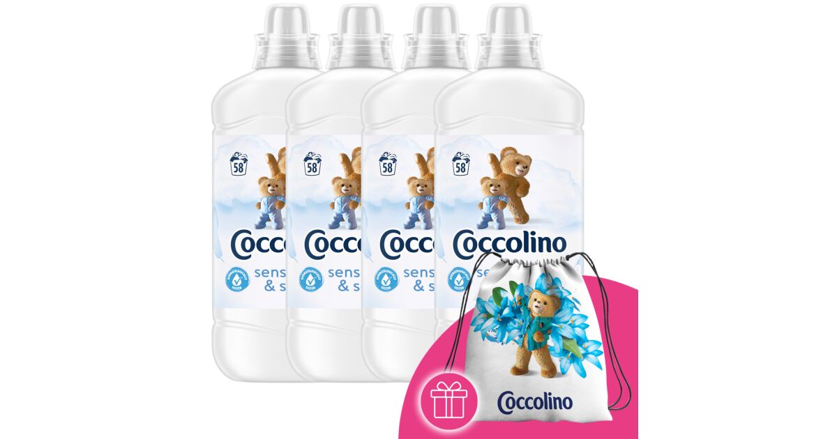 Coccolino Sensitive & Soft Öblítő koncentrátum 232 mosás 4x1450ml + Ajándék Coccolino Hátizsák vélemények