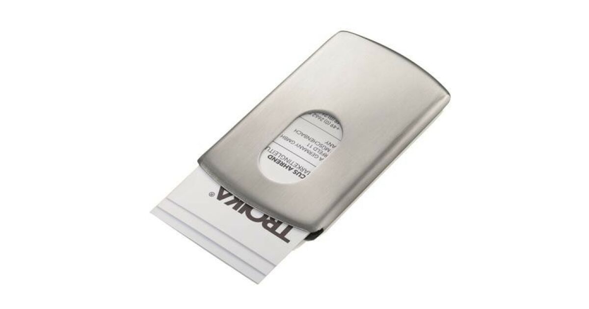 Ezt a terméket így is ismerheted: TROIKA Névjegykártya tartó tárca, fém, 12 db-os, TROIKA "Slide"