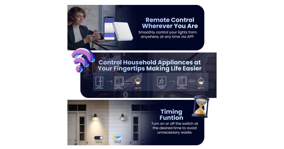 Élvezd az okosotthon kényelmét a Zadabso® WiFi-s okoskapcsolójával! Vezéreld a világítást telefonodról vagy hanggal, automatizáld a be- és kikapcsolást, és növeld otthonod biztonságát. Mindez egyszerűen, központi egység nélkül!